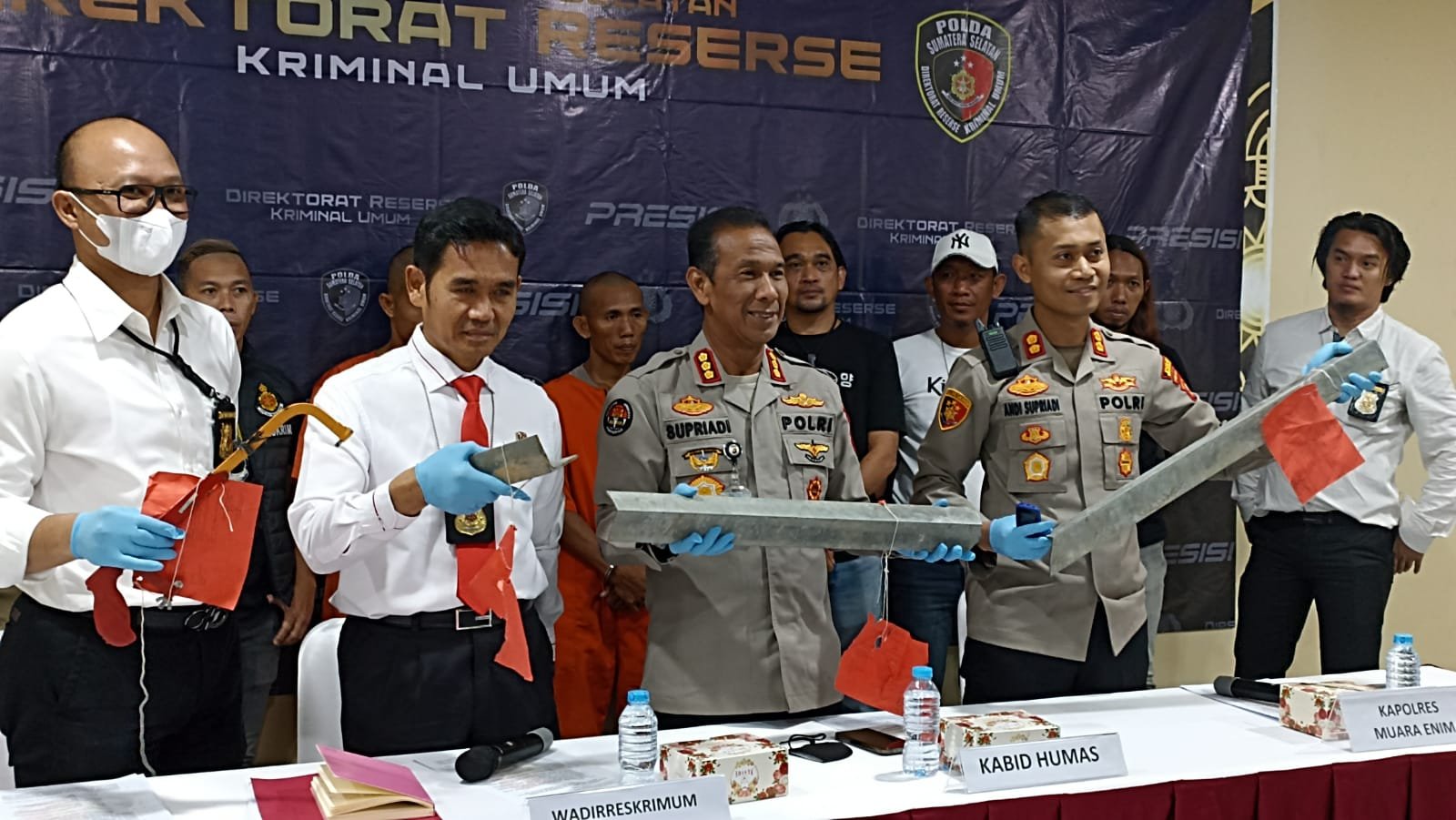 Atas laporan korban yang merupakan PT PLN Persero anggota gabungan Subdit III Jatanras Polda Sumsel, anggota Polres Muara Enim dan Polsek Gunung Megang berhasil mengamankan dua dari tiga pelaku pencurian besi siku tower, di kediamannya pada Kamis 1 Desember 2022 sekitar pukul 06.30 WIB.