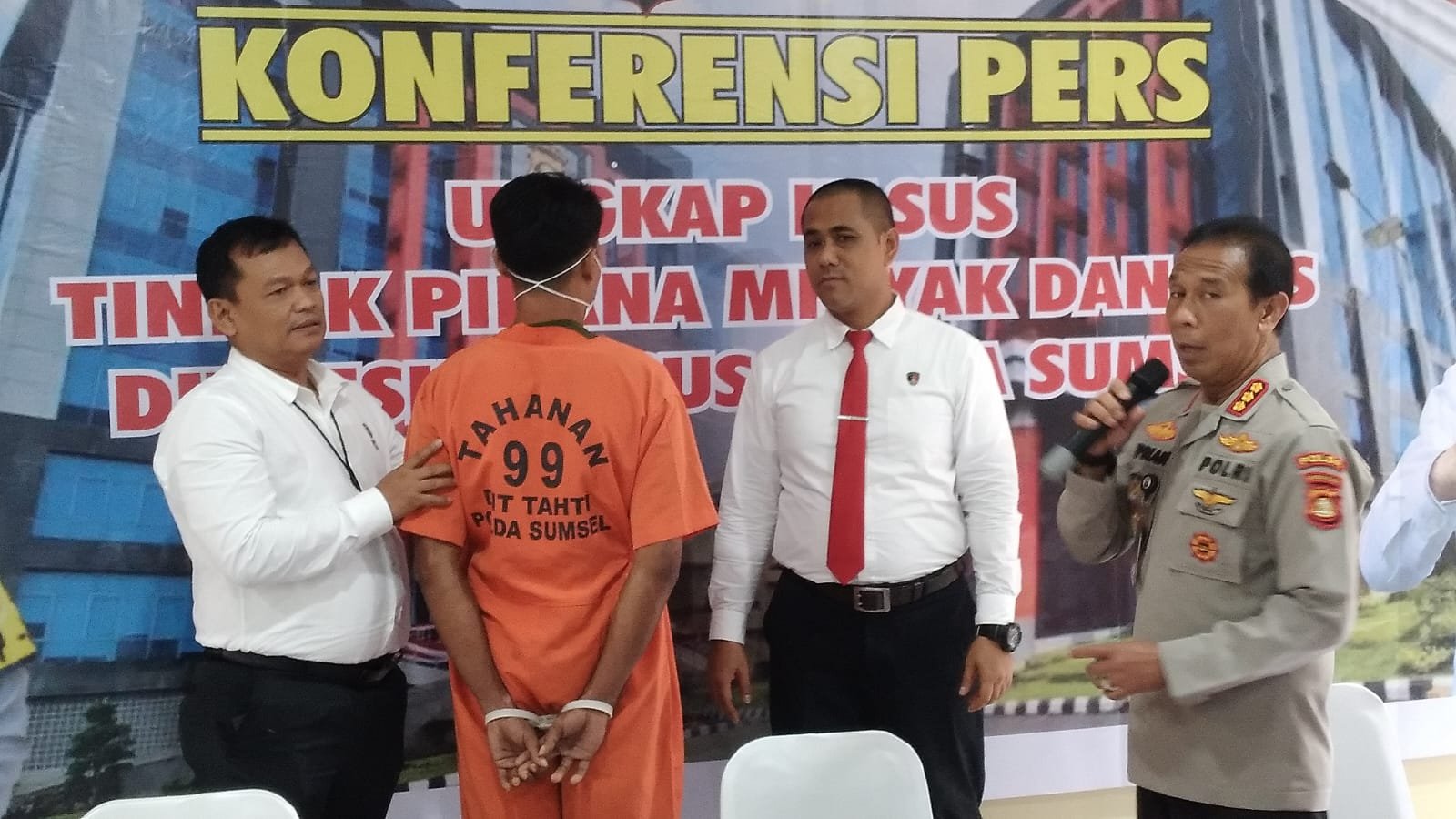 Wadir Dirreskrimsus Polda Sumsel AKBP Putu Yudha Prawira mengatakan, penangkapan pelaku berdasarkan informasi dari masyarakat melalui aplikasi bantuan polisi (Banpol).