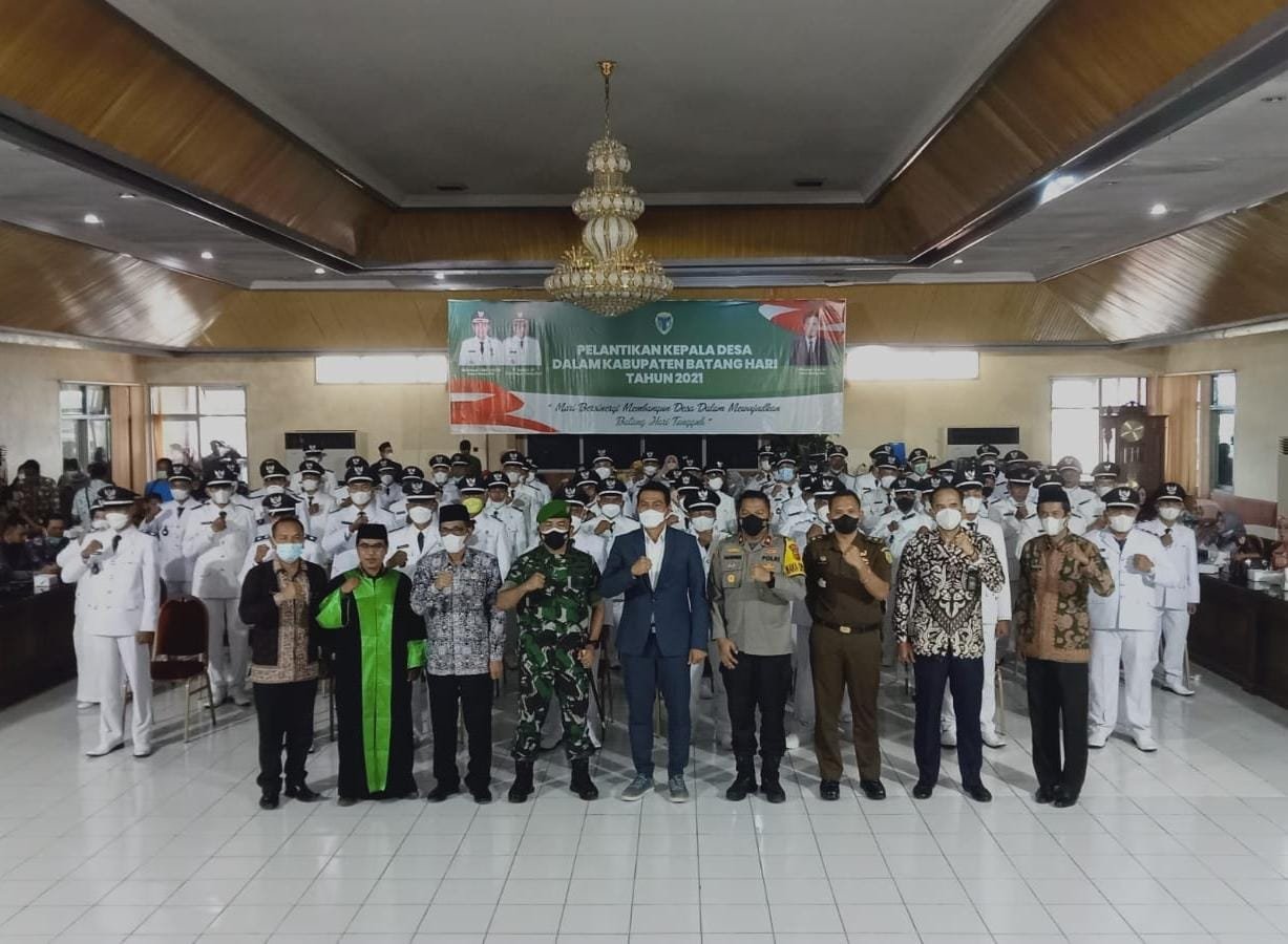 Ada puluhan Kades terpilih yang bertarung pada Pilkades serentak dan dilantik secara langsung oleh Bupati Batanghari, Muhammad Fadhil Arief, di ruang pola Kantor Bupati Batanghari, Kamis (16/12/2021).