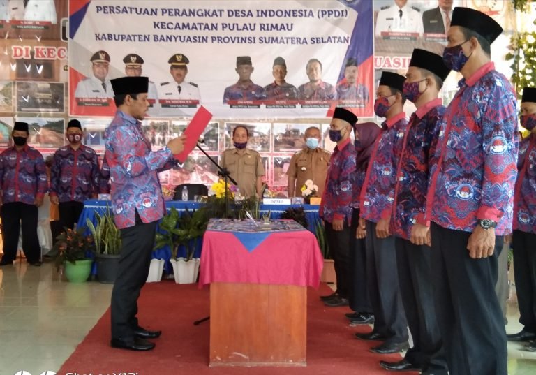 MATTANEWS.CO, BANYUASIN – Persatuan perangkat Desa (PPDI) kecamatan Pulau Rimau masa bakti 2021-2026 mengelar acara pengukuhan dan penyerahan NIPD di pendopoan kantor kecamatan pulau Rimau, Senin (25/01/2021).
