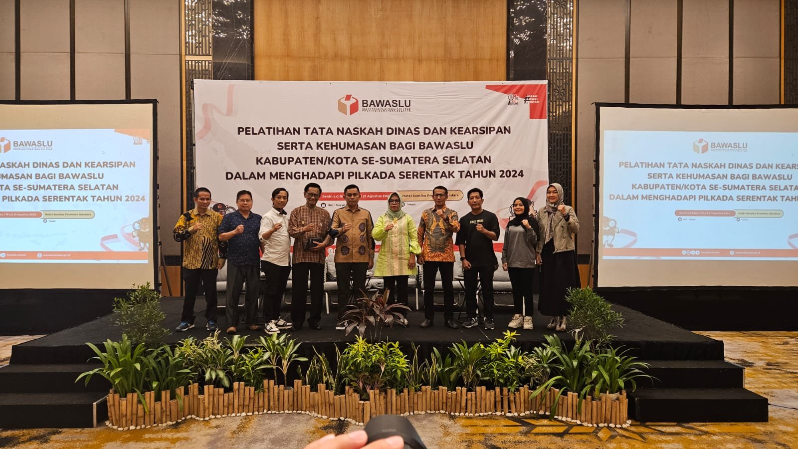 Kegiatan pelatihan dengan mengundang komisioner dan sekretariat Bawaslu kabupaten/kota se-Sumsel ini digelar di Hotel Santika Premiere Bandara Palembang, Senin (21/08/2024)
