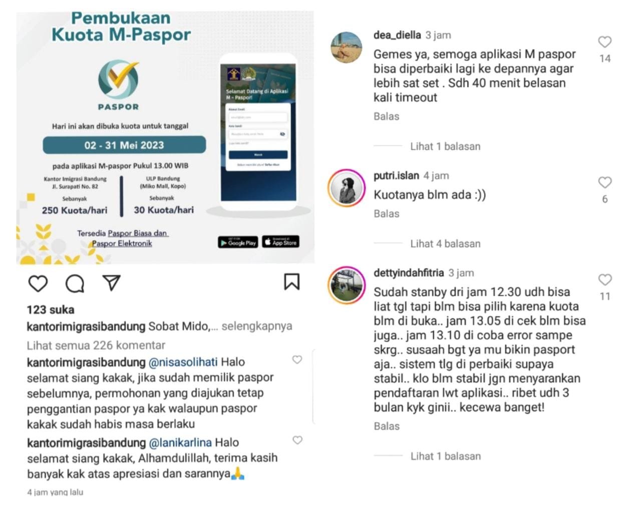 MATTANEWS.CO, BANDUNG – Kantor Imigrasi Kelas 1 TPI Bandung mengumumkan pembukaan kuota M-Paspor untuk tanggal 02-31 Mei 2023 melalui akun @kantorimigrasibandung pada hari ini, Jumat (28/4/2023).