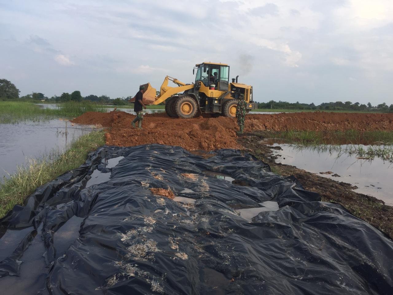 “Lapisan terpal itu biar jalan yang kita timbun tidak amblas,” terang Kapten Inf Syafullah