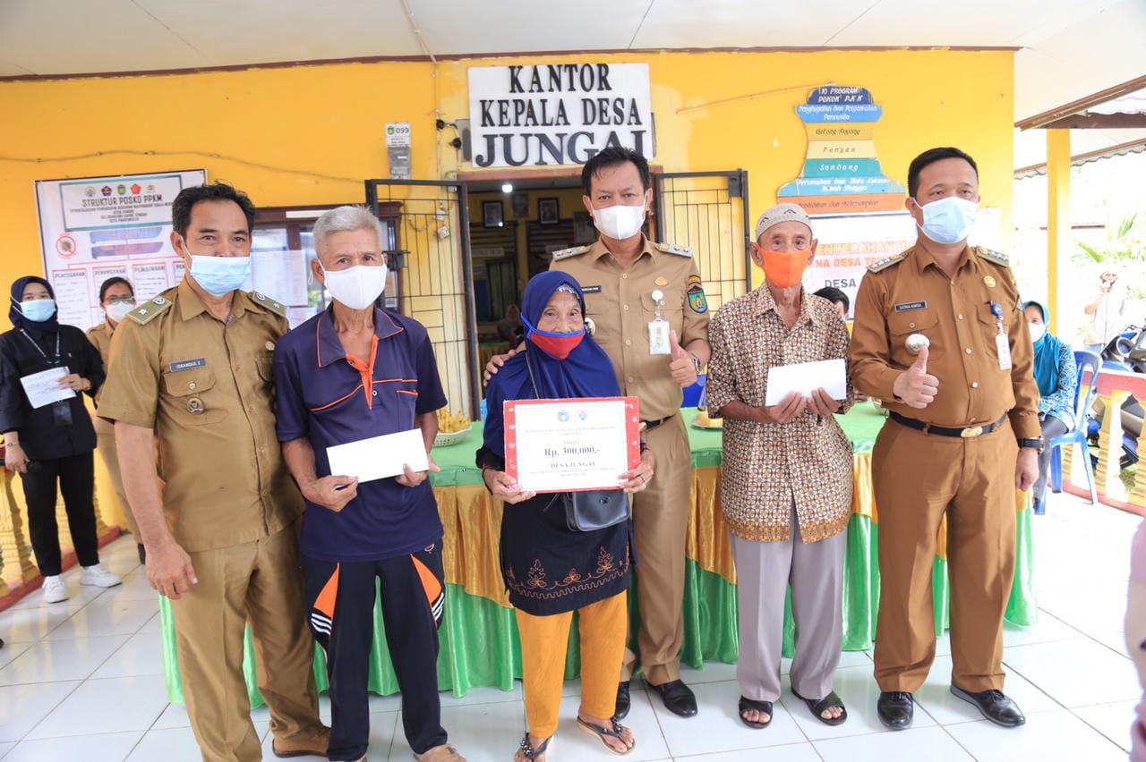 Pembagian yang berpusat di Kantor Desa, nampak dihadiri oleh Camat RKT, Satria Karsa SE dan Kepala Desa Jungai Iskandar, Bhabinkamtibmas beserta Babinsa.