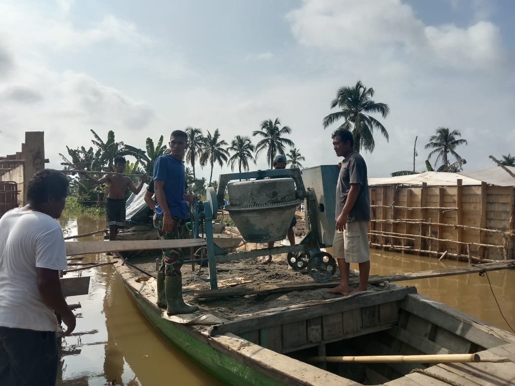 Terlihat alat untuk mengecor seperti Molen mulai dipindahkan menggunakan getek karena akan mengecor jembatan.