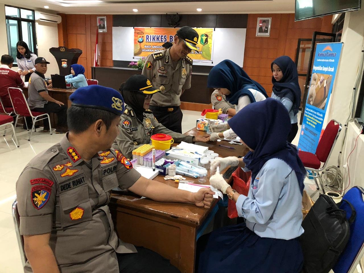SULAWESI BARAT, Mattanews.co – Pemeriksaan kesehatan rutin Biddokkes Polda Sulbar yang berlangsung sejak kemarin, kali ini kembali dilancarkan, Selasa (23/07/2019) di Aula Arya Guna Mapolda, Jalan Aiptu Nurman Kalubibing Mamunyu.