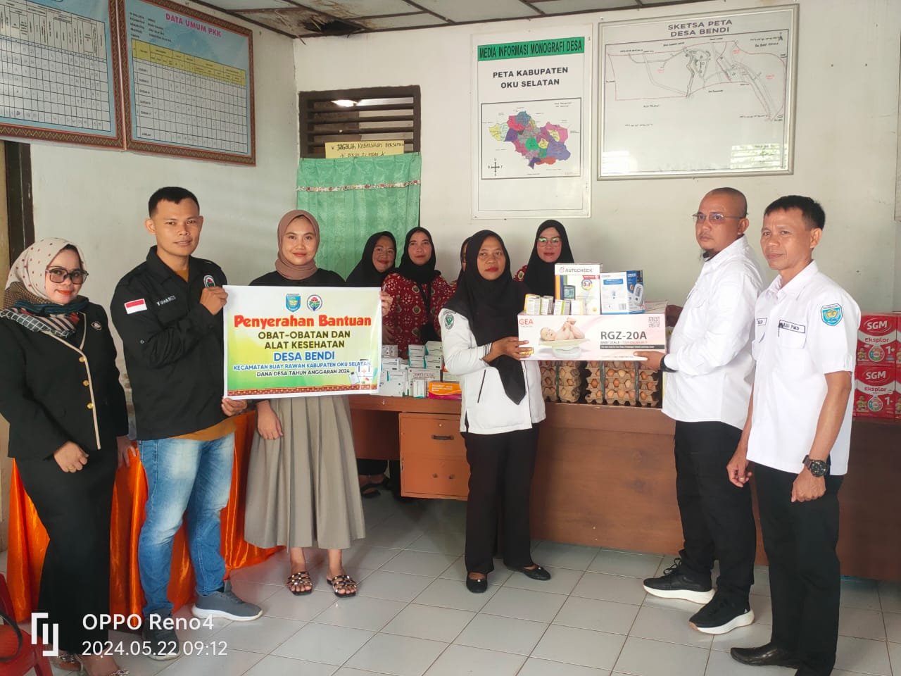 Selain bantuan pemberian makanan dan susu untuk balita serta ibu hamil dan menyusui. Pemdes Bendi juga menyerahkan bantuan alat kesehatan dan obat2 untuk kegiatan Posyandu. Bertempat di Kantor Desa Bendi Kecamatan Buay Rawan, Kabupaten OKU Selatan. Pada (22/05/24).