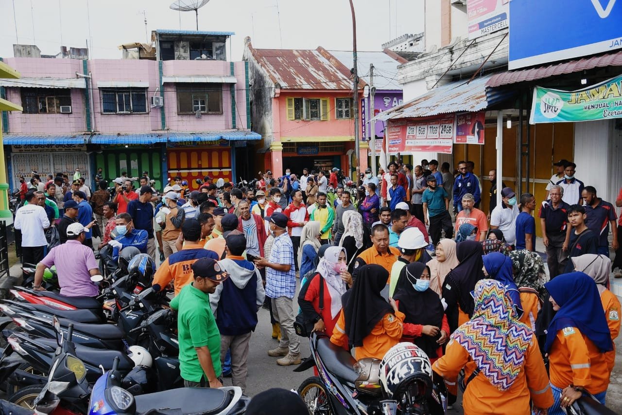 Gotong royong yang dilakukan oleh seratusan ASN dan PDPK berpusat di Pasar Pagi Kota Kualasimpang, dipimpin langsung oleh Sekda, Drs. Asra, bersama para petugas kebersihan Dinas Lingkungan Hidup.
