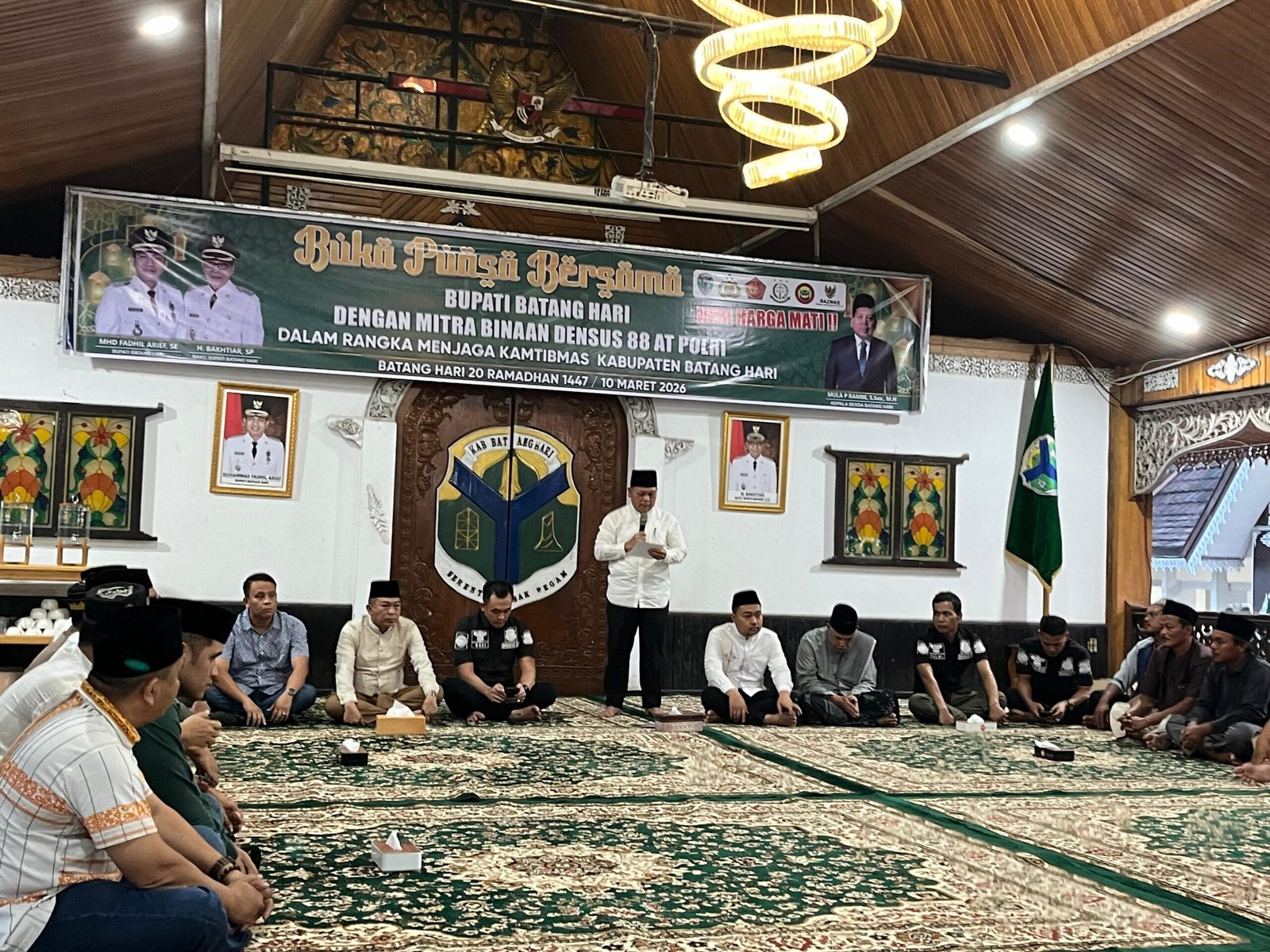 MATTANEWS.CO, BATANG HARI – Pemerintah Kabupaten Batang Hari mengadakan kegiatan buka puasa bersama dengan mitra binaan Densus 88 AT Polri. Kegiatan tersebut dilaksanakan di Serambi Rumah Dinas Bupati Batang Hari pada Selasa sore sekitar pukul 17.00 WIB.