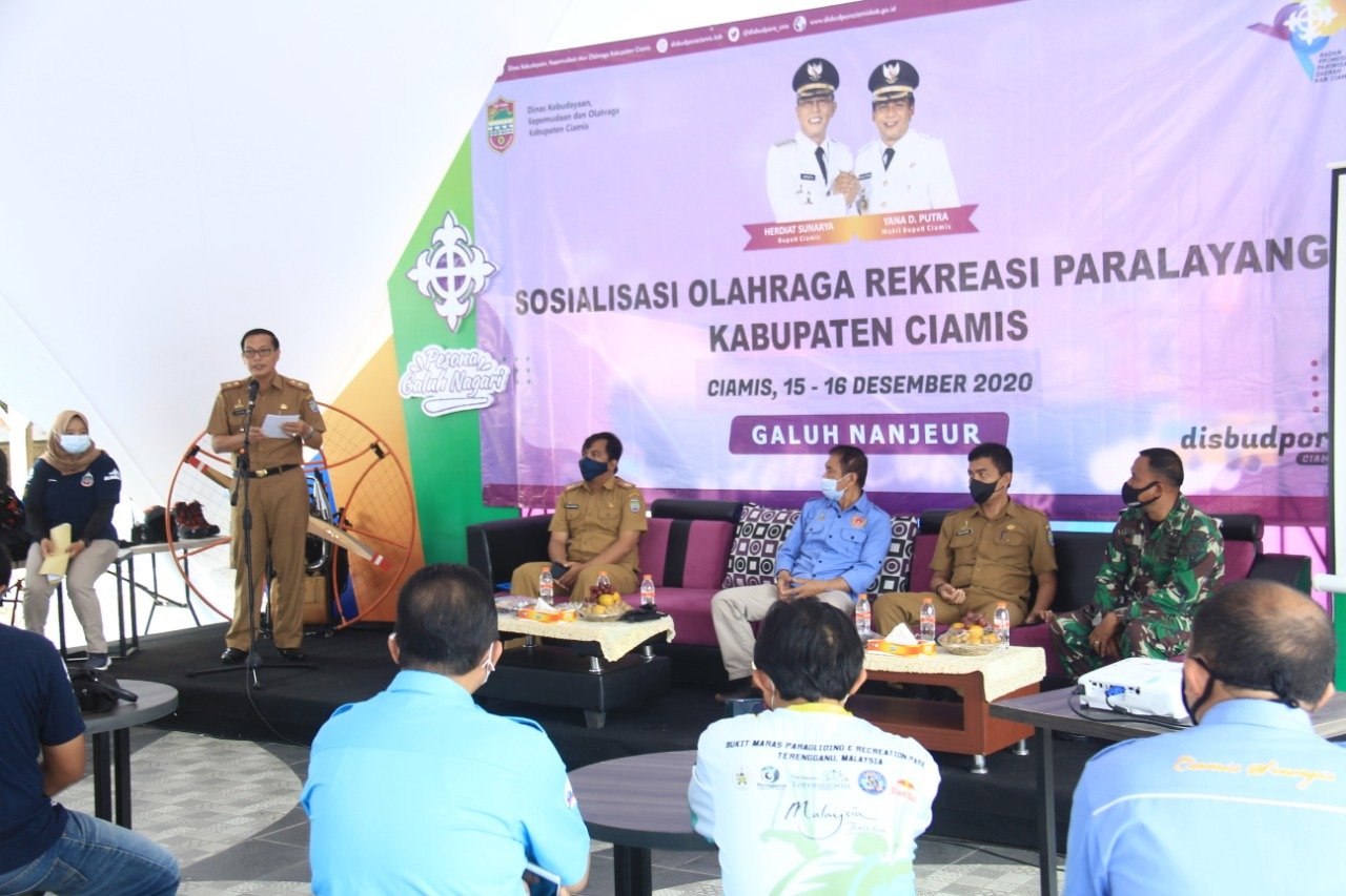 CIAMIS, Mattanews.co – Pemerintah Kabupaten (Pemkab) Ciamis melalui Dinas kebudayaan Pemuda dan Olahraga (Disbudpora), menyelenggarakan Sosialisasi olahraga rekreasi Paralayang. di Tourism Information Center (TIC), Selasa (15/12/2020).