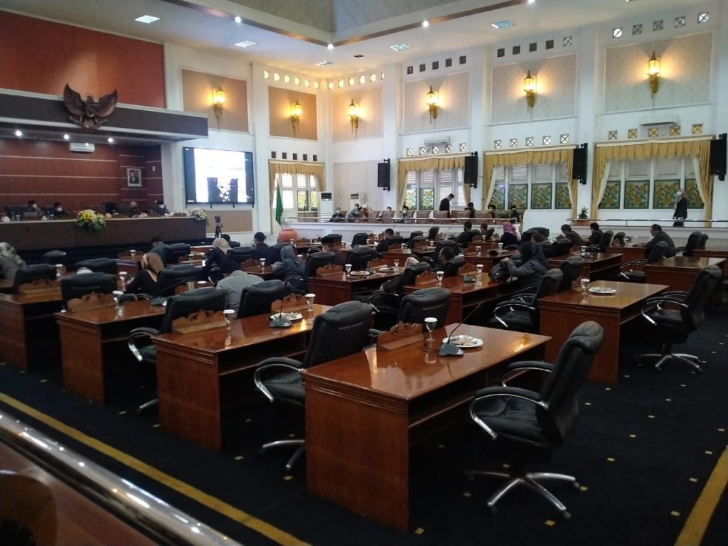 MATTANEWS.CO PURWAKARTA – Jajaran Pemkab dan DPRD Purwakarta Sepakati Raperda Retribusi Persetujuan Bangunan Gedung. jajaran Pemkab Purwakarta bersama DPRD gelar paripurna pembicaraan tingkat dua penetapan keputusan rancangan peraturan daerah (Raperda) tentang Retribusi Persetujuan Bangunan Gedung (PBG), Selasa (15/6/2021) di Gedung Dewan, Ciganea, Purwakarta.