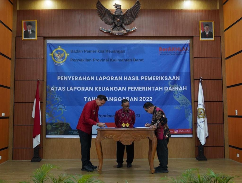 Keberhasilan meraih WTP disampaikan langsung oleh Kepala Perwakilan BPK Provinsi Kalimantan Barat. Wahyu Priyono menyerahkan Laporan Hasil Pemeriksaaan (LHP) atas LKPD Kabupaten Kapuas Hulu TA 2022 kepada Bupati Kapuas Hulu Fransiskus Diaan di aula BPK-RI Perwakilan Provinsi Kalimantan Barat.