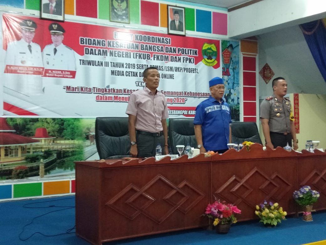 LINGGA, KEPRI, Mattanews.co – Pemerintah Kabupaten (Pemkab) Lingga melalui Bakesbangpol menggelar Rapat Koordinasi Bidang Kesatuan Bangsa dan Politik dalam Negeri (FKUB, FKDM, FPK) triwulan III tahun 2019, bersama Ormas/LSM/ OKP, Profesi, Media Cetak dan Media Online, Rabu (07/08/2019).