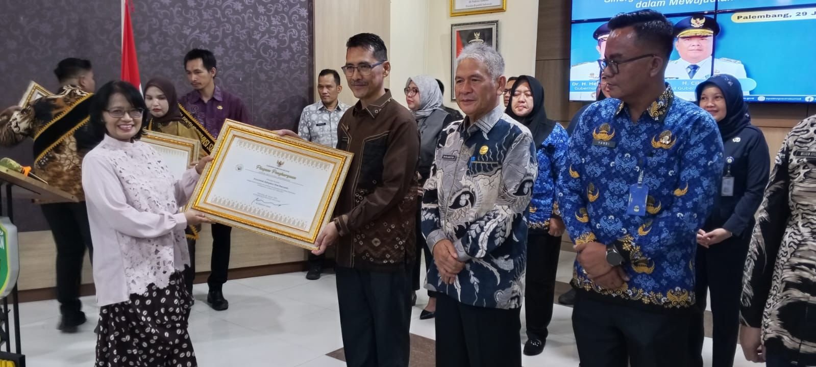 Apresiasi ini diserahkan oleh Deputi Lembaga Administrasi Negara (LAN) Republik Indonesia bersama Asisten Administrasi dan Umum Pemerintah Provinsi Sumatera Selatan.