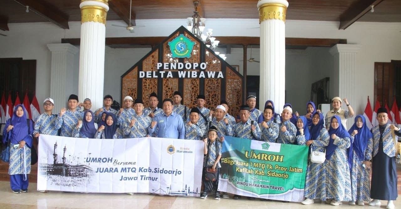 MATTANEWS.CO, SIDOARJO – Pemerintah Kabupaten Sidoarjo memberikan apresiasi istimewa kepada para kafilah yang berhasil meraih juara pertama pada Musabaqah Tilawatil Qur’an (MTQ) tingkat Provinsi Jawa Timur. Sebanyak tujuh orang kafilah asal Sidoarjo mendapatkan bonus berupa pemberangkatan ibadah umroh dari Pemkab Sidoarjo.