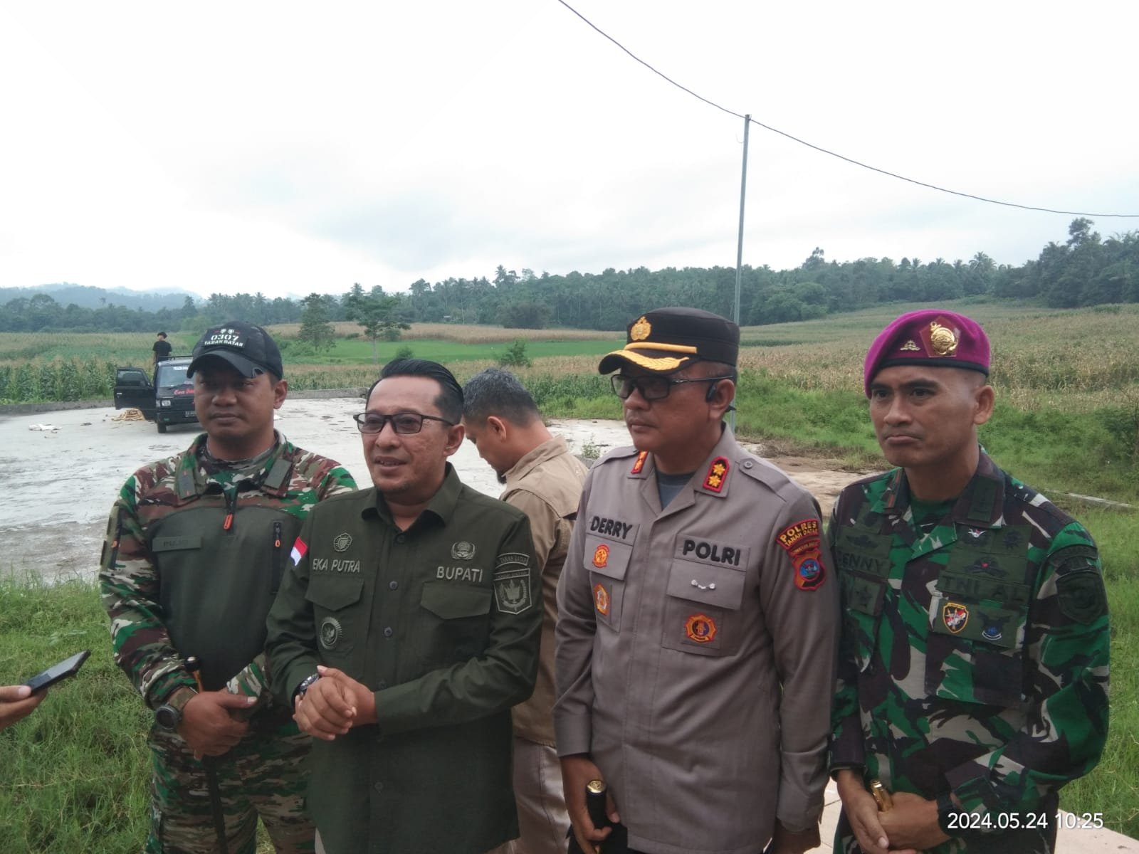 Dalam peninjauan Realokasi lahan untuk perumahan tersebut, tampak Bupati Eka Putra SE.MM, didampingi Dandim 0307 TD, Pujo, Kapolres Derry, dan Danyon Marinir Denny, Camat Rambatan Roza Melfita dan lainya, pada Jum’at (24/5/2024).