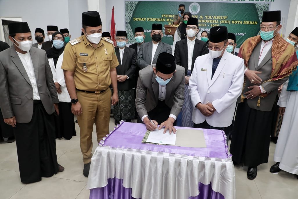 Hal tersebut diungkapkan Wali Kota (Wako) Medan Bobby Nasution diwakili Wakil Wali Kota (Wawako) Medan Aulia Rachman, ketika menghadiri Pengukuhan dan Ta’aruf Dewan Pimpinan MUI Kota Medan masa khidmat 2021 -2026 di Aula Kantor MUI Kota Medan, Jalan Nusantara, Kecamatan Medan Kota, Senin (12/4/2021).