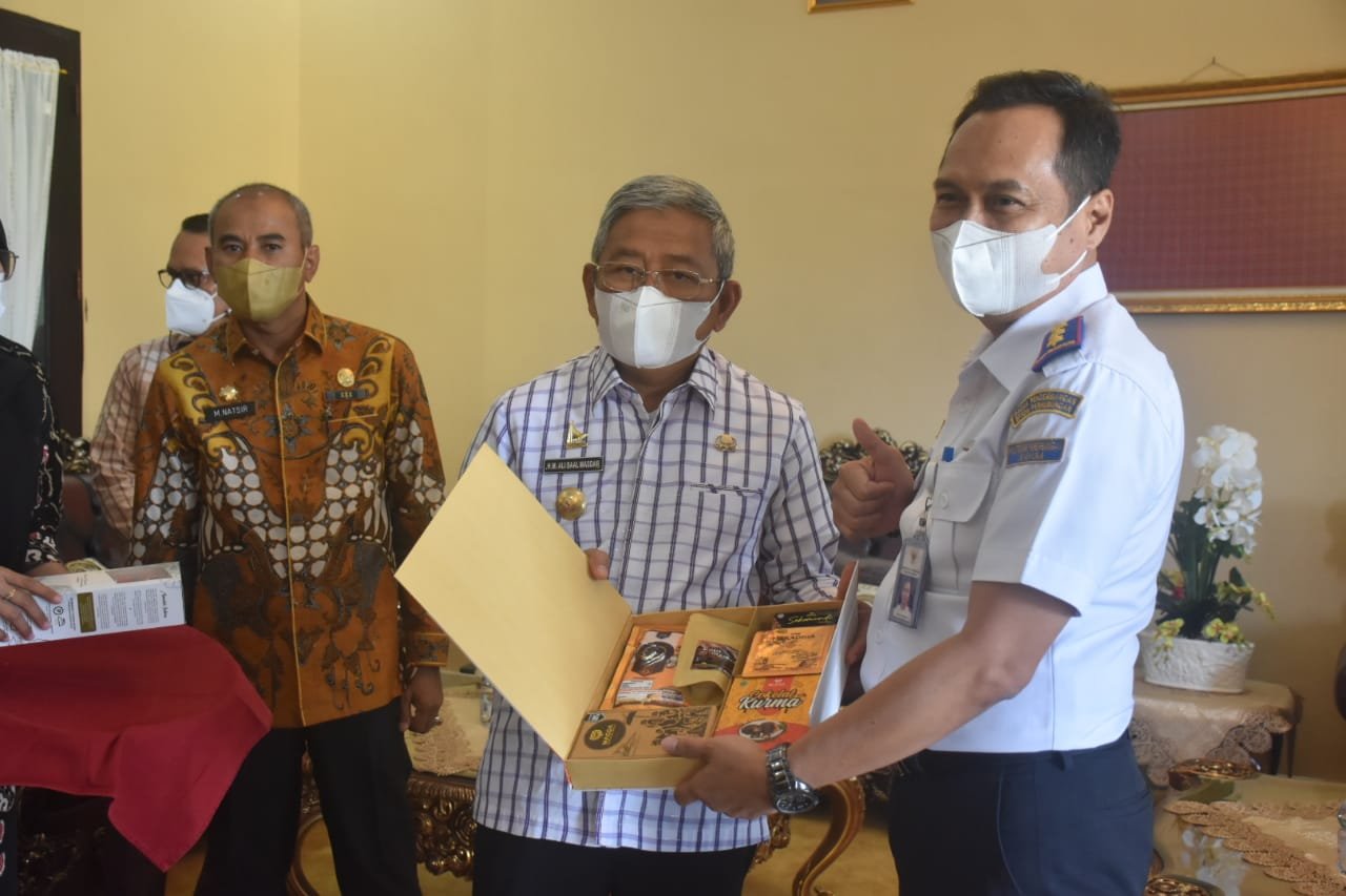 oleh Gubernur Sulbar, Ali Baal Masdar dengan Direktur Politeknik Penerbangan Jayapura, Benny Suherman, di Rujab Gubernur Sulbar, Jumat (5/5/2021).
