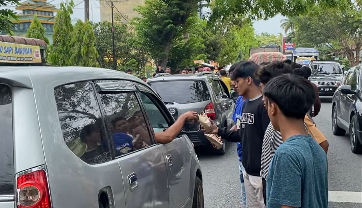 “Sebayak 500 nasi bungkus dibagikan kepada ke pengguna jalan, kegiatan ini guna menciptakan kondisi yang kondusif di tengah tengah masyarakat,” ungkap Alfan salah satu pemuda yang ikut deklarsi, Jumat (8/3/2024).