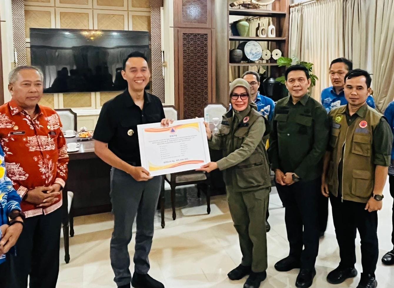 Bantuan tersebut diserahkan langsung Deputi Bidang Logistik dan Peralatan BNPB, Andi Eviana, kepada Bupati OKI Muchendi Mahzareki di Pendopo Rumah Dinas Bupati. Paket bantuan meliputi dua unit perahu karet lengkap dengan mesin 25 PK, ratusan paket sembako, matras, selimut, terpal, hingga perlengkapan kebersihan bagi pengungsi.