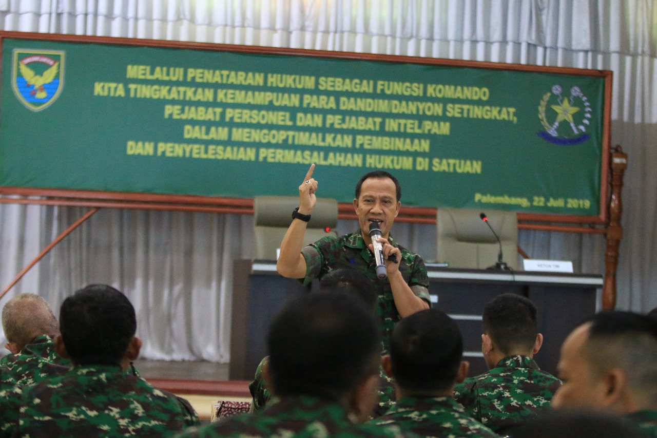 Pada kesempatan tersebut, Pangdam II/Sriwijaya Mayjen TNI Irwan, S.I.P., M. Hum., dalam amanat tertulis yang dibacakan Kasdam II/Sriwijaya Brigjen TNI Syafrial, psc., M. Tr (Han), menyampaikan bahwa, kegiatan penataran hukum merupakan salah satu upaya pimpinan Kodam II/Sriwijaya dalam rangka memberikan pencerahan dan pemahaman tentang hukum sebagai fungsi Komando, sekaligus untuk menyamakan visi, persepsi dan interpretasi terhadap tugas dan tanggungjawab setiap Komandan atau Pimpinan Satuan terkait dengan kapasitasnya sebagai atasan yang berhak menghukum (Ankum) maupun selaku Perwira Penyerah Perkara (Papera) serta pejabat yang menangani bidang Personel dan Intelijen dalam rangka pembinaan dan penegakan hukum di satuannya.