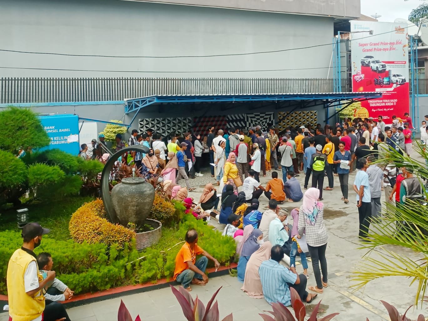 MATTANEWS.CO, PRABUMULIH – Pembagian Bantuan Langsung Tunai (BLT) BBM yang dipusatkan di Bank Sumsel Babel (BSB) Cabang Prabumulih masuk hari ke 2, masyarakat penerima manfaat ini dengan sabar dalam antrian untuk mengambil hak mereka.