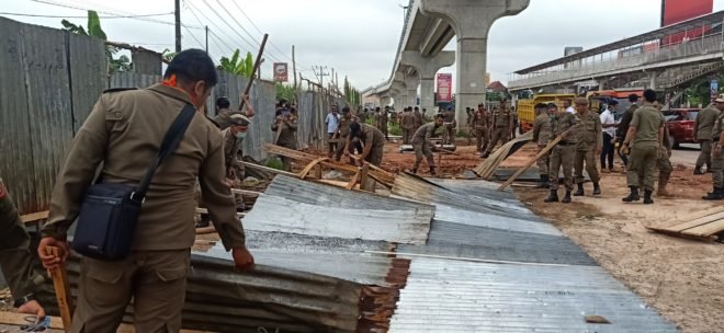 PALEMBANG, Mattanews.co – Pembongkaran bangunan yang dilakukan Satuan Pamong Praja Banyuasin, di Jalan Gubernur Nurdin Panji Jakabaring Palembang, menuai protes dari beberapa warga, yang keberatan membongkar paksa lapak usaha, Senin (23/03/2020).