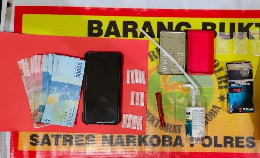 “Ada beberapa lembar uang tunai dengan nominal Rp1.150.000, bong lengkap dengan 1 buah pipet kaca,1 buah sendok warna merah dari tangan pelaku,” ucapnya.