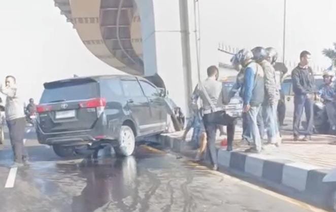 Bukannya berhenti, Hendry justru memacu mobil lebih cepat untuk kabur. Namun, sesampainya di atas Fly Over, kendaraan yang dikemudikannya hilang kendali dan menabrak tiang LRT hingga ringsek parah.
