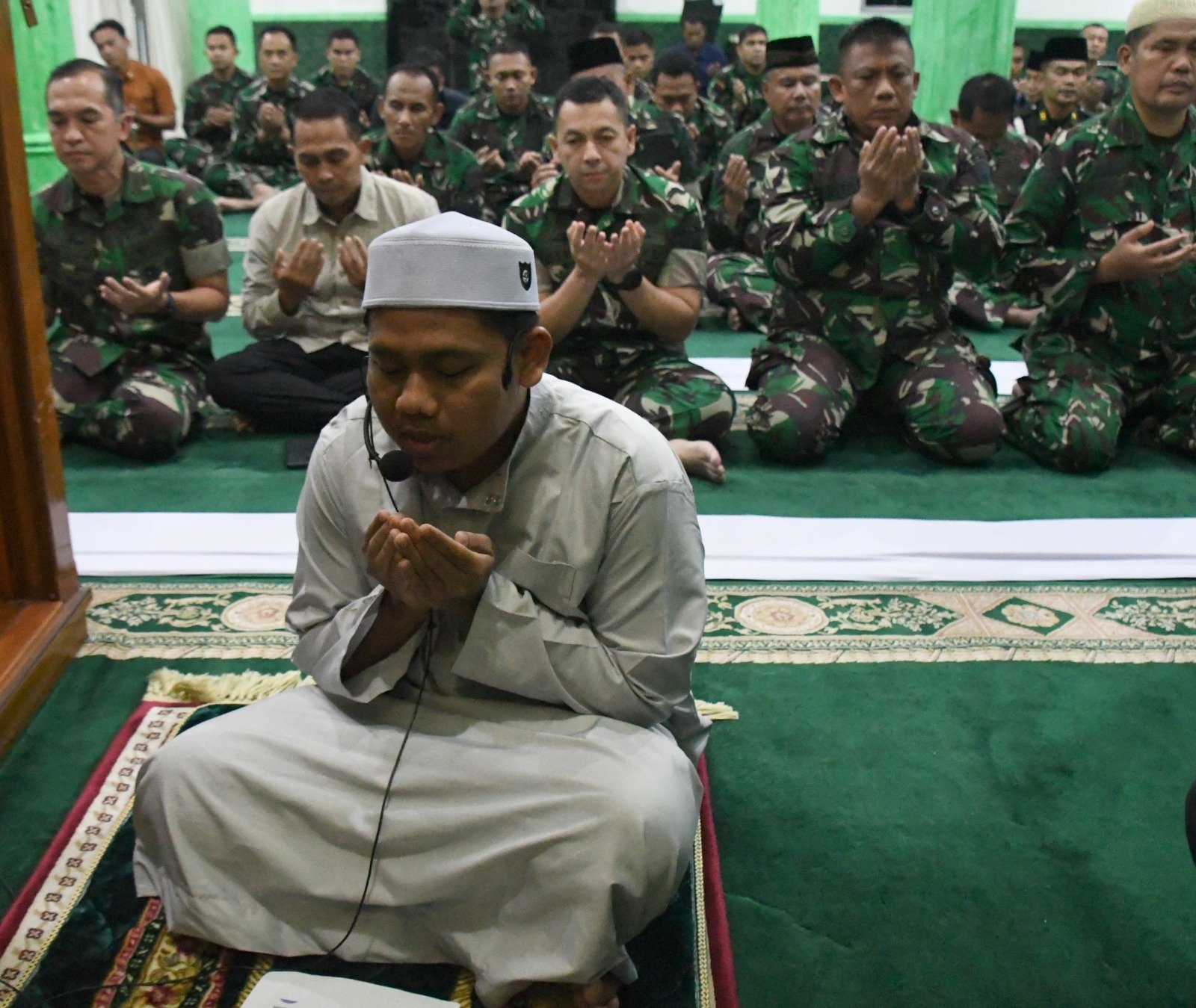 Diawali shalat Isya berjamaah di Masjid Al Ikhlas Makorem 044/Gapo, dilanjutkan dengan pembacaan surah yasin dan doa bersama, berharap keberkahan dan kelancaran dalam mengawali tahun 2026.