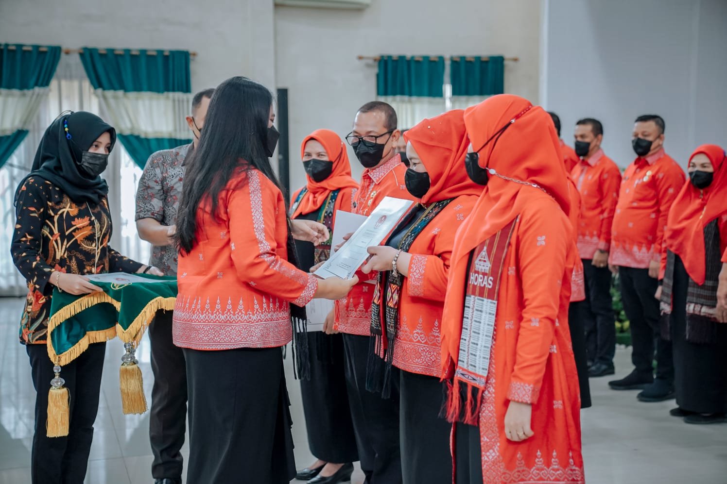 MATTANEWS.CO, MEDAN – Ketua Dewan Kerajinan Nasional Daerah (Dekranasda) Kota Medan Ny Kahiyang Ayu M Bobby Afif Nasution mengukuhkan Pengurus Dekranasda Kota Medan periode 2021-2024 di Gedung Serba Guna PKK Kota Medan, Jalan Rotan Medan, Kamis (3/2).