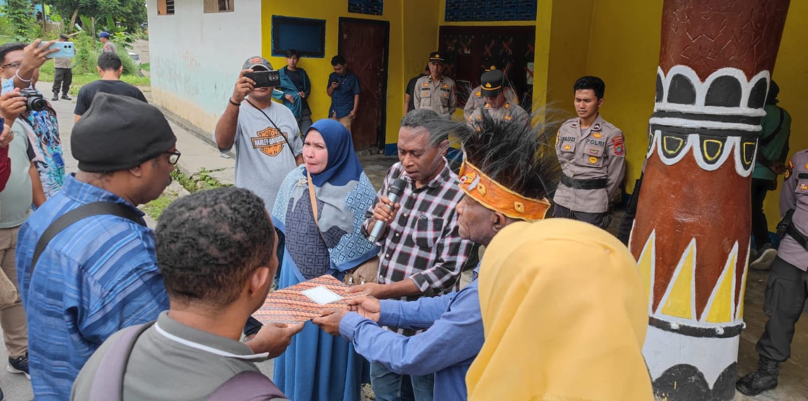 Penyampaian orasi dari Ketua dan korlap diterima langsung oleh Ketua LMA Fakfak Valentinus Kabes.