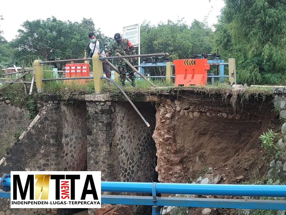 Babinsa Serma Ajat menuturkan, hujan turun dengan intensitas tinggi terjadi sepanjang hari. Sehingga air deras mengalir dan mengikis tanah tebing tanggul penyangga jembatan kali.