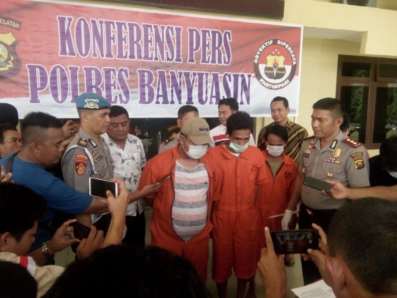 Dalam konferensi pers ini, SG yang tercatat sebagai warga Desa Sido Mulyo, Air Kumbang, Banyuasin Sumsel ini bersama rekannya IY (34) warga Kelurahan Kedondong Raye Banyuasin, resmi jadi tersangka.