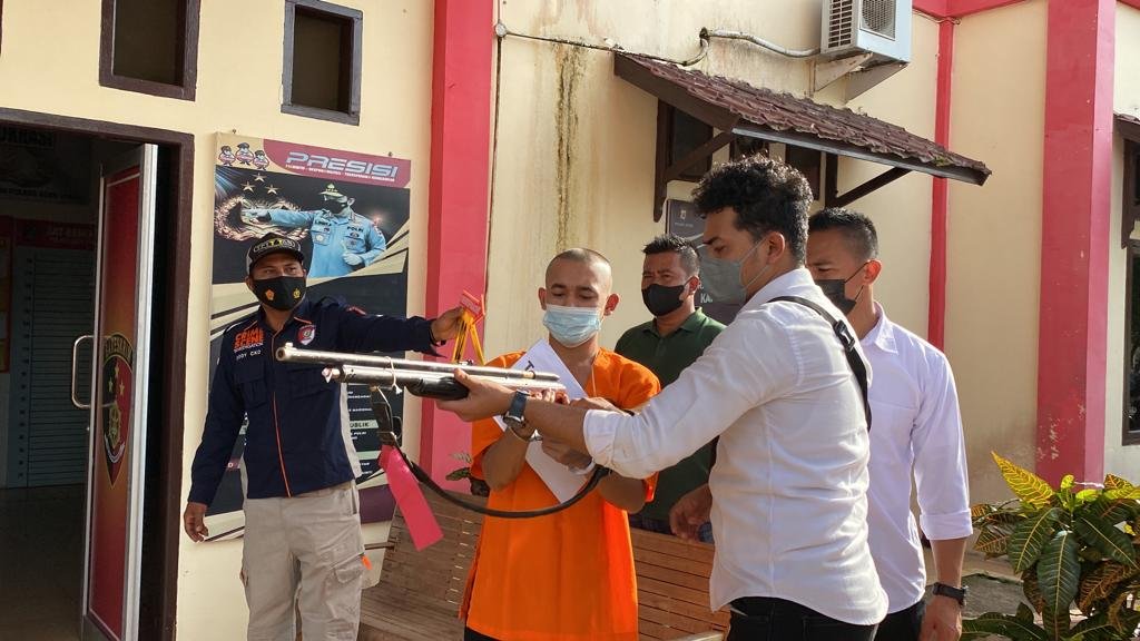 Reka ulang kejadian diperagakan langsung oleh tersangka utama, Ajrol (25). Sementara dua tersangka lainnya, Ajmal (abang kandung Ajrol) dan Fakhrurrozi (pemilik senapan angin) digantikan perannya oleh anggota polisi.