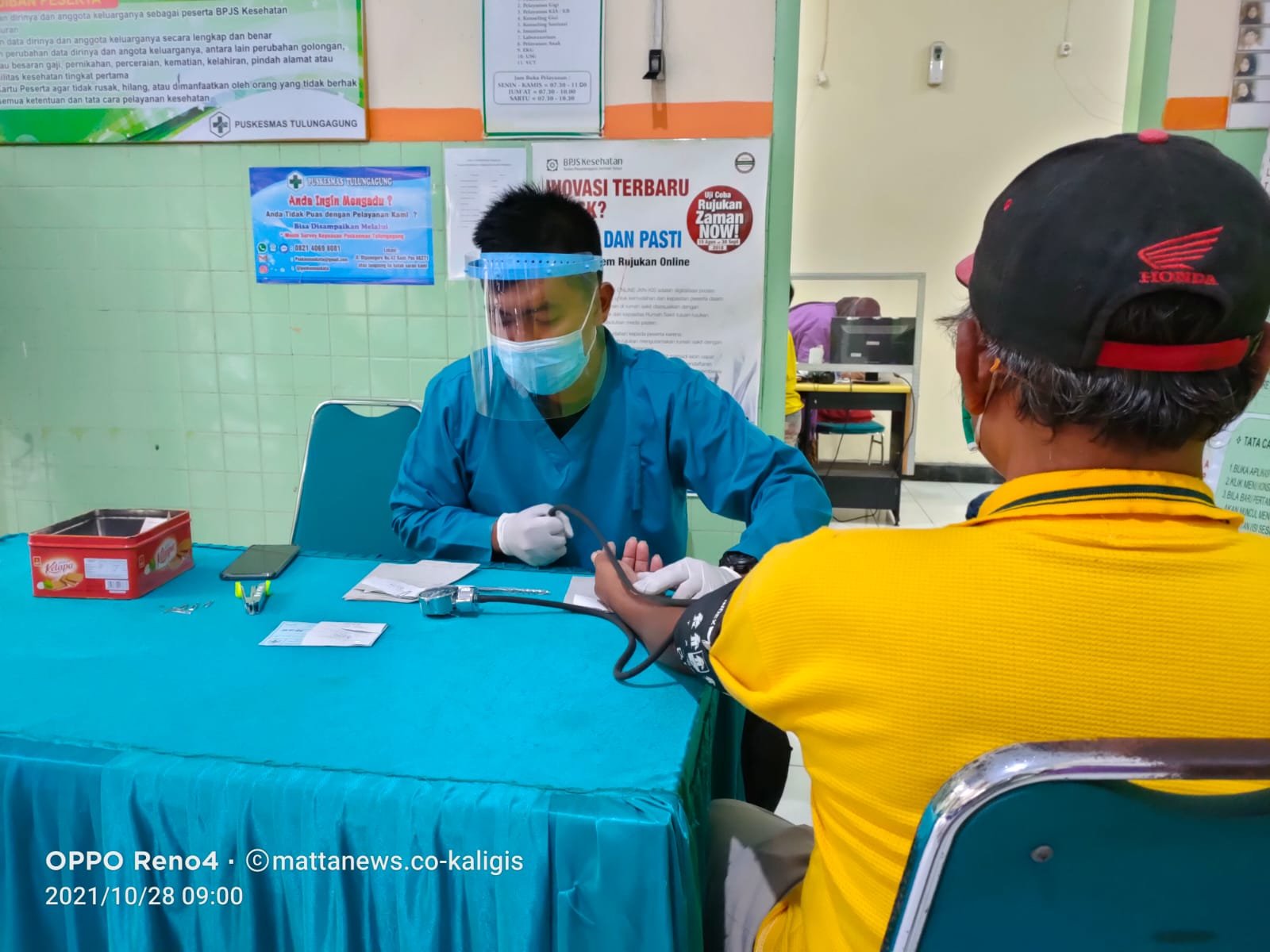 Salah satu perawat di Puskesmas Kota Kabupaten Tulungagung, Jawa Timur saat mengecek kesehatan pasien, Kamis (28/10) Foto: Ferry Kaligis/mattanews.co