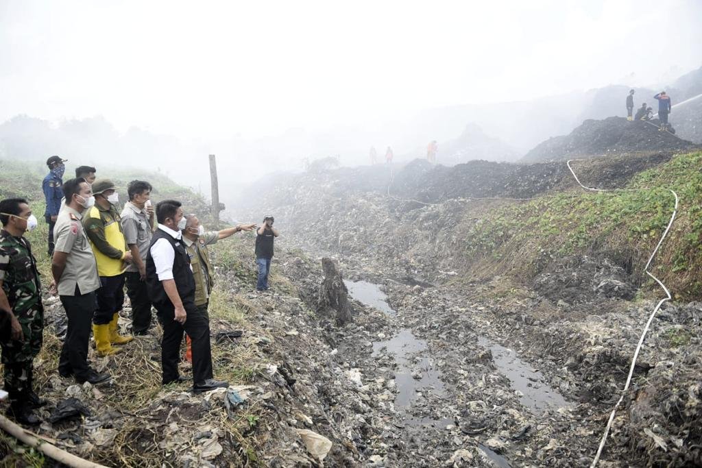 MATTANEWS.CO, PALEMBANG – Gubernur Sumsel, Herman Deru kembali turun ke lokasi kebakaran Tempat Pembuangan Akhir (TPA) Sukawinatan di Jalan Noerdin Panji, Sukarami, Palembang, Selasa (15/8) siang. Tinjauan itu kedua kalinya setelah sebelumnya pada Senin (14/8) malam.