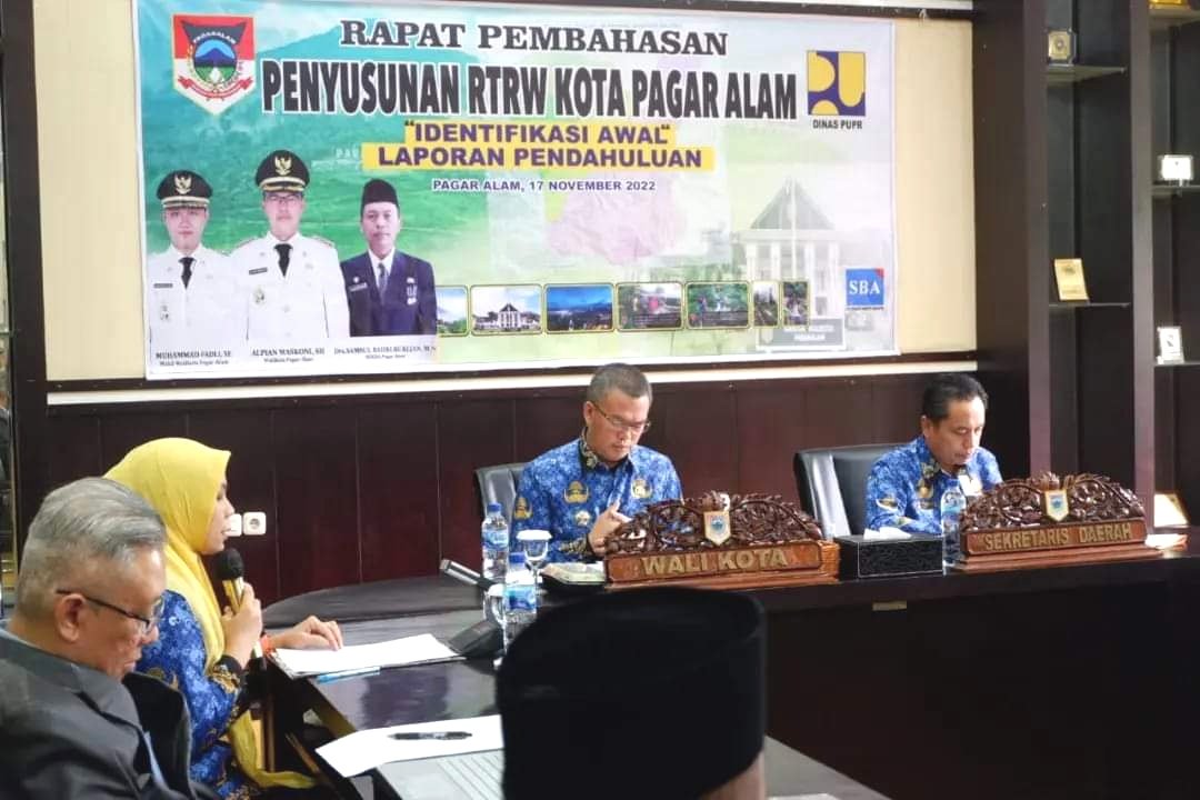 MATTANEWS.CO PAGAR ALAM – Wali Kota Pagar Alam, Alpian Maskoni secara resmi membuka Rapat Identifikasi awal laporan pendahuluan revisi Peraturan Daerah (Perda) tentang Rencana Tata Ruang Wilayah (RTRW) Kota Pagar Alam, bertempat di ruang rapat Besemah I Setdako Pagar Alam, Kamis (17/11/2022).