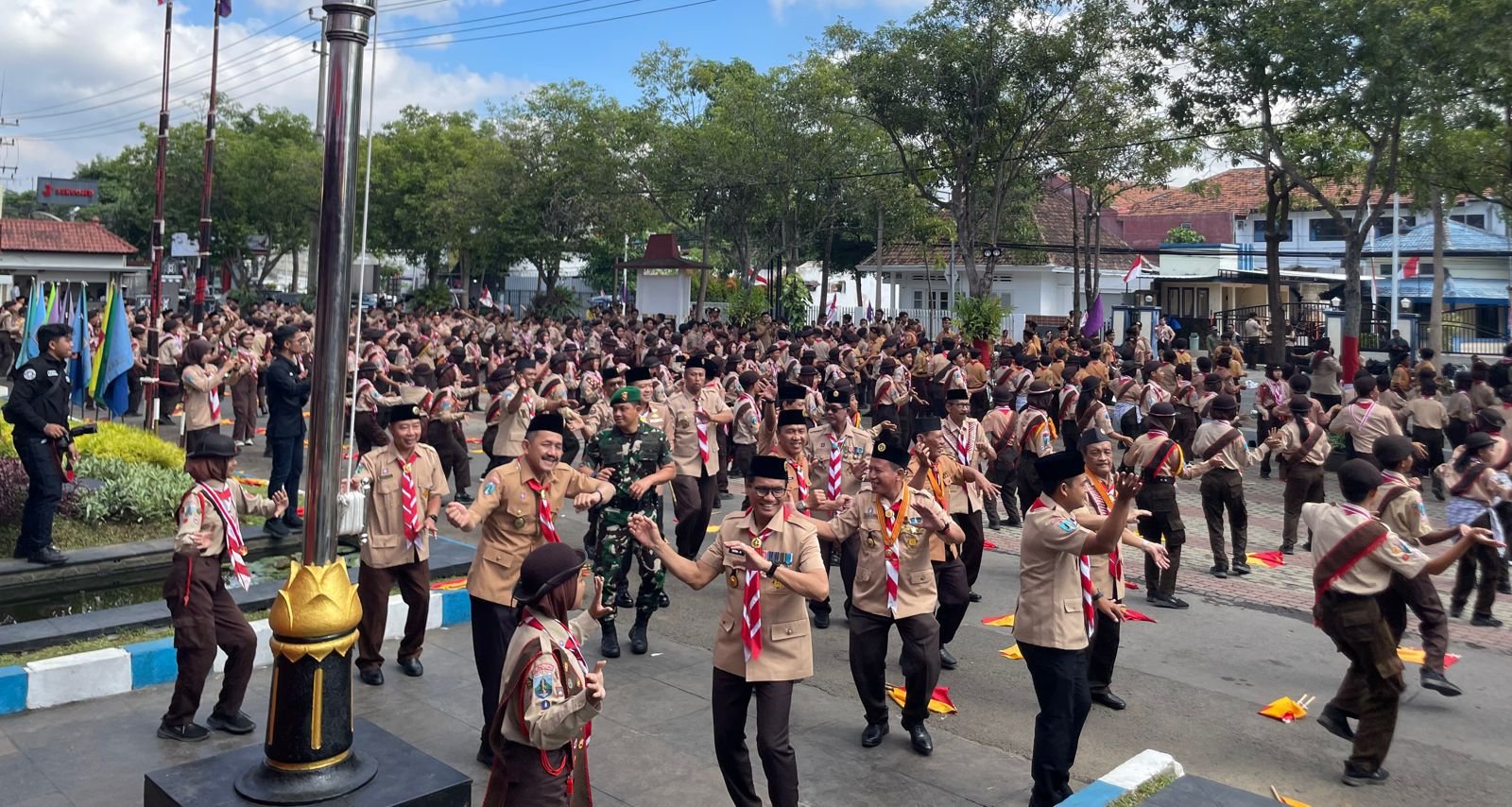 Pantauan media, kegiatan Apel Besar Peringatan Hari Pramuja ke-63 tahun 2024 ini diakhiri dengan Pj Bupati Tulungagung Heru Suseno bersama jajaran Forkopimda joget goyang Maumere bersama ratusan anggota Pramuka di halaman kantor Bupati setempat.