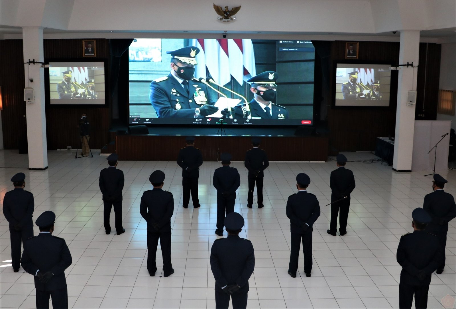 turut dihadiri secara virtual oleh Danseskoau Marsda TNI Samsul Rizal, S.I.P., M.Tr (Han)., Wadanseskoau Marsma TNI Ronny Irianto Moningka, S.T., M.M., beserta pejabat Seskoau dari Bangsal Srutasala, Seskoau, Lembang, Kamis (29/07/2021) kemarin.