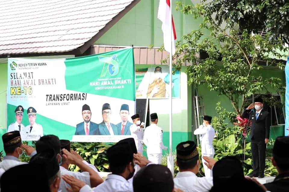 MATTANEWS.CO, PAGAR ALAM – Bertindak sebagai Inspektur Upacara dalam Peringatan Hari Amal Bakti ke-76 tahun 2022, Wali Kota ( Wako) Pagar Alam Alpian Maskoni membacakan amanat dari Menteri Agama Republik Indonesia, Yaqud Cholil Qoumas di Halaman Kantor Kementerian Agama Kota Pagar Alam, Sumatera Selatan (Sumsel), Senin (3/1/2022).