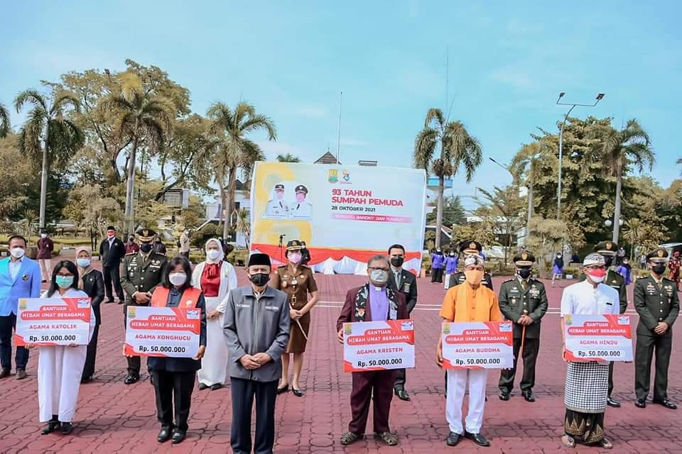 Sebagai simbol persatuan dan kesatuan antar umat beragama, pada kesempatan itu Bupati memberi hibah kepada 5 agama yang tergabung dalam Forum Kerukunan Umat Beragama di Kabupaten Karawang berupa uang senilai Rp50 juta untuk masing-masing umat beragama. (*)