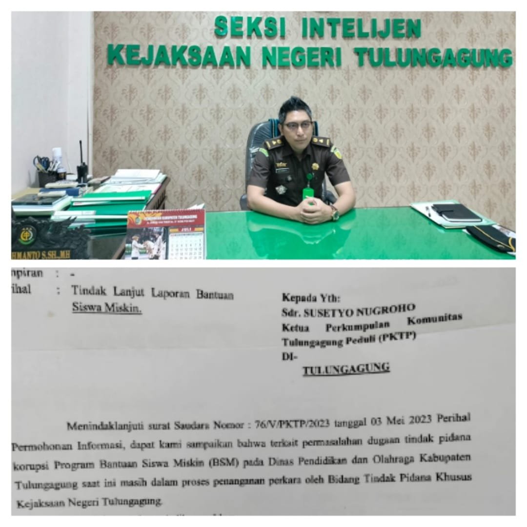 Menyikapi hal ini, Kepala Seksi Intelijen, Amri Rahmanto Sayekti, melalui Kejaksaan Negeri Tulungagung, Jawa Timur, Achmad Muchlis, S.H., M.H., menjelaskan bahwa saat ini kasus dugaan tindak pidana korupsi BSM tahun 2021 di Dinas Pendidikan sedang ditangani oleh Pidana Khusus (Pidsus).