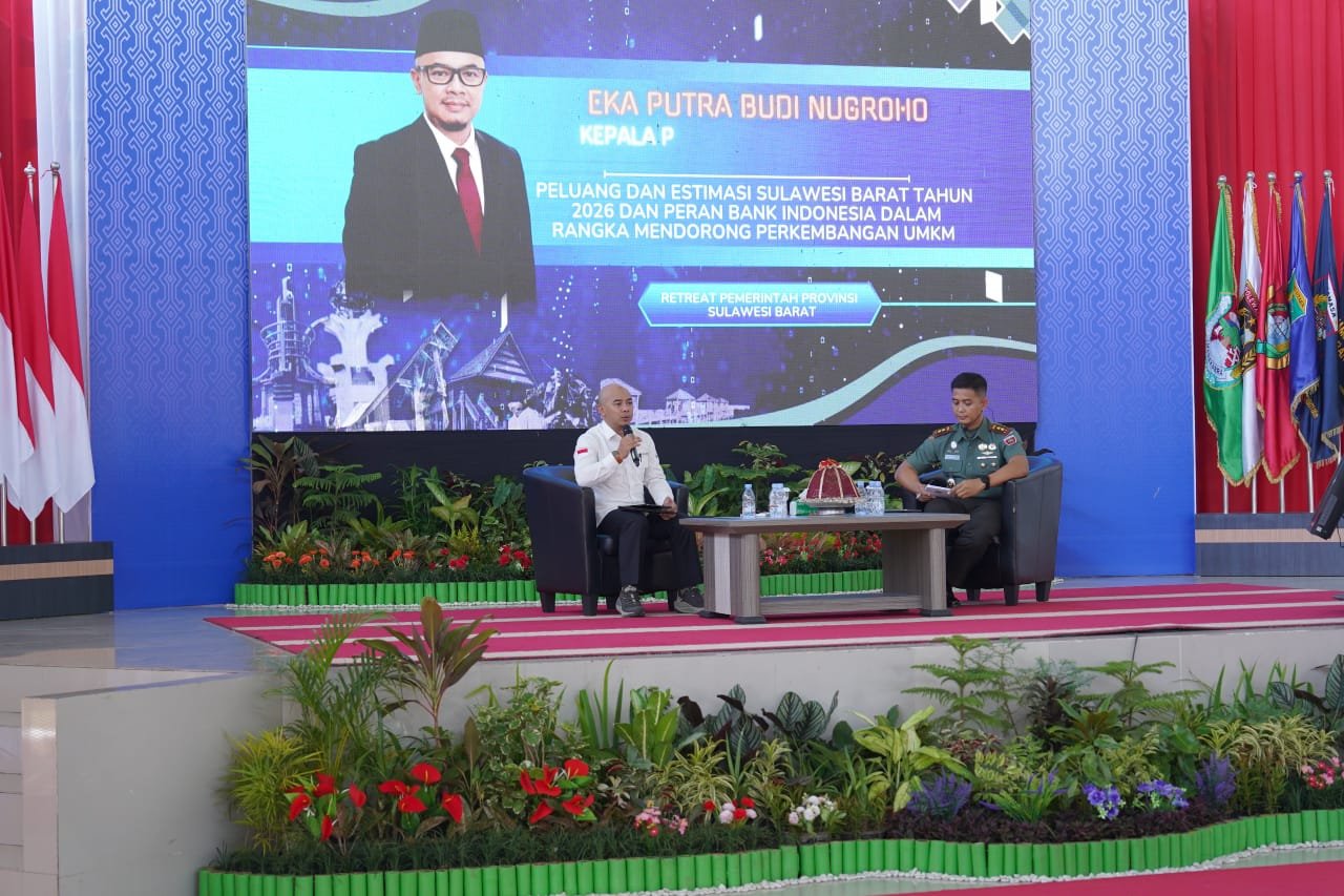 Dalam pemaparannya, Eka Putra Budi Nugroho menyoroti lima pokok utama: perkembangan ekonomi global dan nasional, kondisi ekonomi serta inflasi Sulbar, stabilitas sistem keuangan daerah, potensi sektor unggulan Sulawesi Barat, serta upaya Bank Indonesia dalam mendukung pertumbuhan ekonomi di daerah.