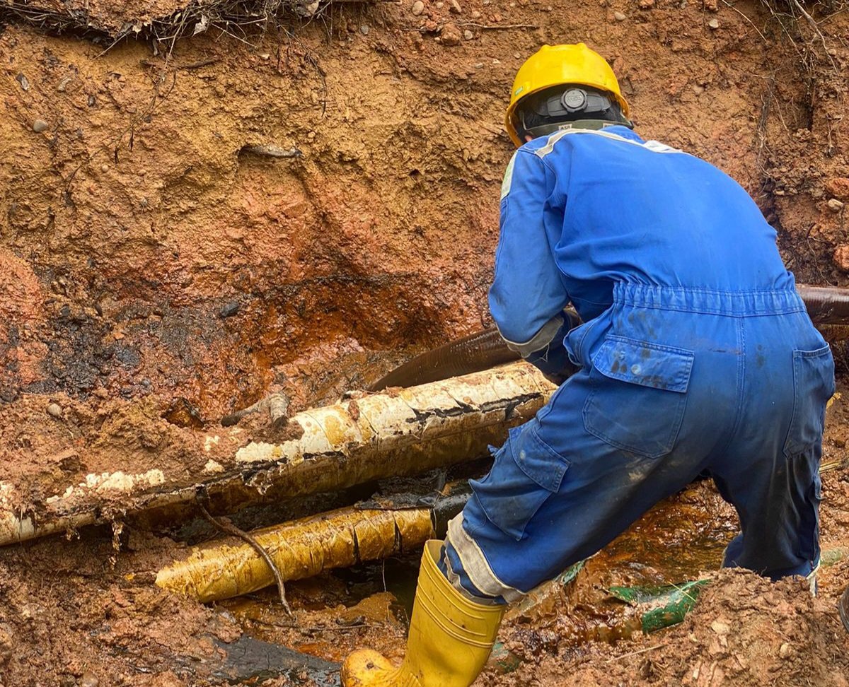 MATTANEWS.CO, PALI – Pertamina EP (PEP) Adera Field sigap tangani kebocoran pipa penyalur minyak yang menghubungan Stasiun Pengumpul (SP) Benuang dan Pusat Pengumpul Produksi (PPP) Pengabuan di Desa Benuang, Kecamatan Talang Ubi, Kabupaten PALI (Penukal Abab Lematang Ilir), Sumatera Selatan, pada Sabtu (13/1/2024).