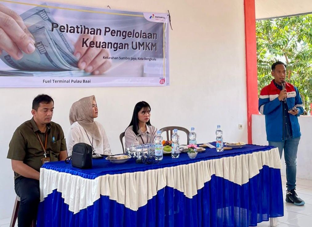 Hadir dalam kegiatan tersebut Arief Darmawan, perwakilan Fuel Terminal Pertamina Patra Niaga Pulau Baai dan Nazuro Anur, Lurah Sumber Jaya. Kegiatan diikuti oleh 7 anggota UMKM binaan Pertamina dan 8 pelaku usaha dari Kelurahan Sumber Jaya serta menghadirkan narasumber yaitu Nunut Lammay Nababan.
