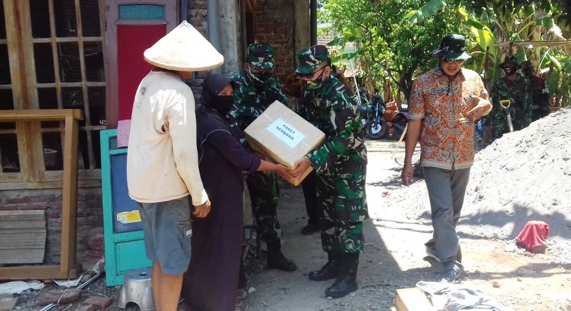 Kolonel Inf Tri Suseno beserta rombongan yang di dampingi Pasiter Kodim 0715/Kendal Kapten Cba Budi Cahyono meninjau lokasi Rumah Tidak Layak Huni (RTLH) yang sementara di bangun sekaligus memberikan bantuan sembako kepada B Hanik Sumarni Dusun Ngampel Sari 02/05 Desa Sendangkulon.