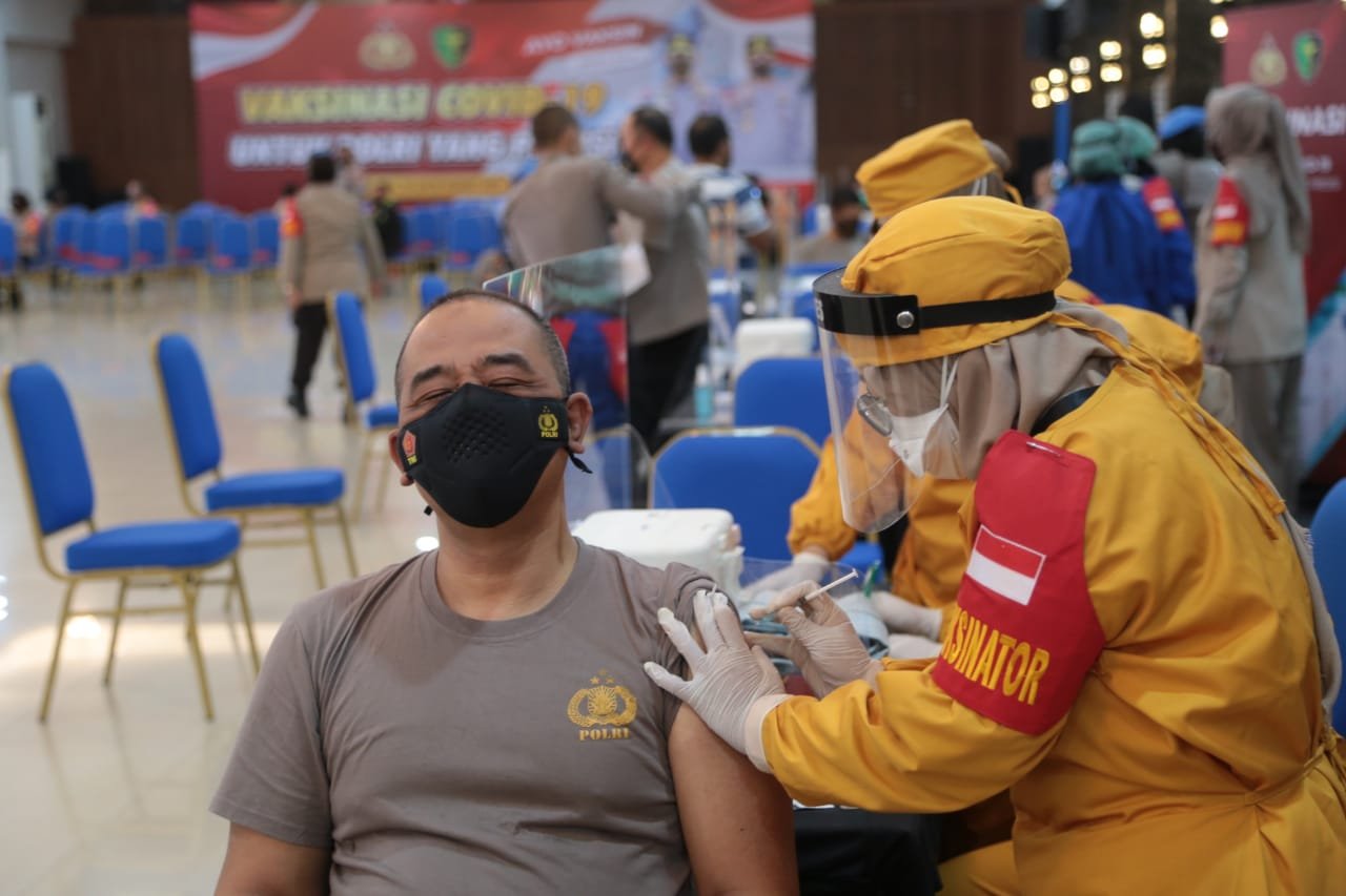 “Ya hari ini Pati dan Pamen ya, Kombes jalani Vaksin Tahap l,” kata Kadiv Humas Polri Irjen Argo Yuwono, Senin (1/3/2021).