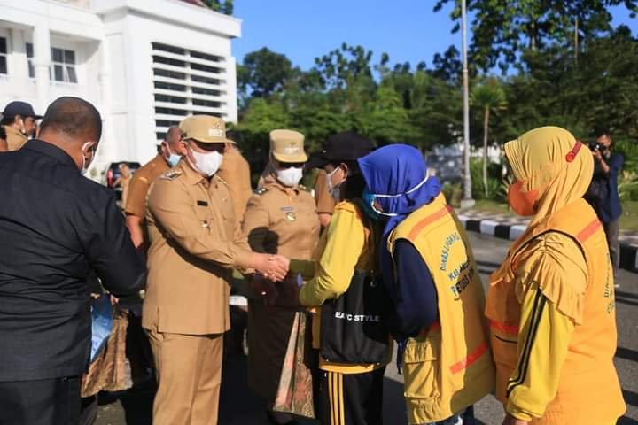 MATTANEWS.CO,LABUHANBATU – Bupati Labuhanbatu Erik Adtrada Ritonga, bersama Wakil Bupati Labuhanbatu Ellya Rosa Siregar, undang petugas kebersihan untuk mengikuti apel pagi di halaman Kantor Bupati, Senin (04/10/2021).