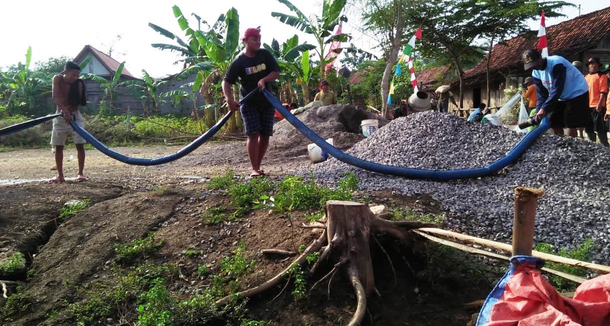 Menyusul di pekerjaan jalan masih meninggalkan pekerjaan sisa, petugas pengairan yang dikoordinir Fadly (18), warga Dukuh Kenteng RT 2/ RW 7, Desa Tambakselo, tidak kalah sibuknya.